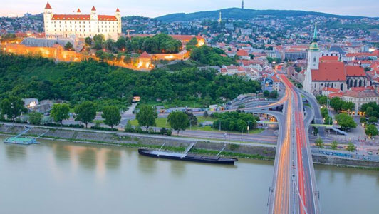 Bratislava, the capital of Slovakia, is set along the Danube River by the border with Austria and Hungary. It’s surrounded by vineyards and the Little Carpathian mountains, crisscrossed with forested hiking and cycling trails. The pedestrian-only, 18th-century old town is known for its lively bars and cafes. Perched atop a hill, the reconstructed Bratislava Castle overlooks old town and the Danube.